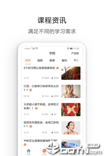 丰富多样的学习内容,涵盖产品知识、健康理念、销售技巧等,满足不同学习需求。