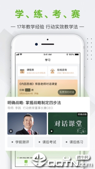 行动商学院是行动旗下专为企业家打造的在线(APP),用户可以随时随地通过行动商学院app进行在线学习。其宗旨在于帮助企业家们通过简洁、高效的学习方式,将所学知识融入到企业管理之中,持续提升其经营与管理能力。行动商学院的核心课程由李践老师主讲的《浓缩EMBA》。