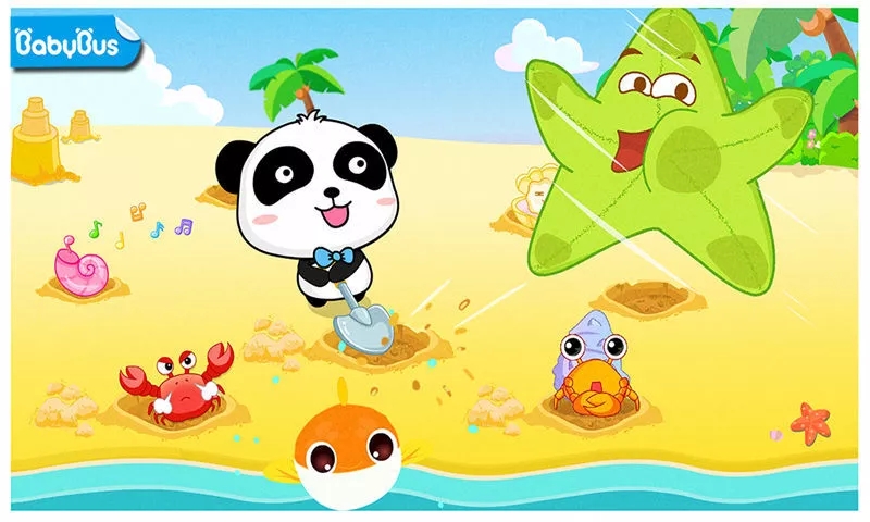 沙滩挖挖乐,,模拟真实沙滩效果,让宝宝在手机或平板上尽情体验沙滩游戏的,洁净无忧。这片专为宝宝打造的黄金沙滩,隐藏着海星、神秘宝箱、漂流瓶、小鱼、螃蟹、海啸等一切沙滩景观,让宝宝尽情探索这片热情奔放的沙滩。