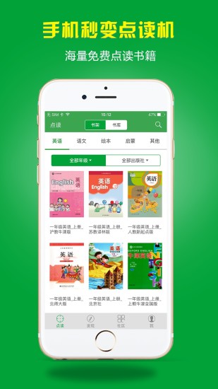 小朋友的点读应用,一款手机端免费点读软件。提供丰富免费点读书籍,让手机瞬间化身点读神器,包含超过2万册中英文,涵盖小学生的语文、英语课本教材,让学习随时随地。不仅可以聆听故事、国学,还可欣赏儿歌。