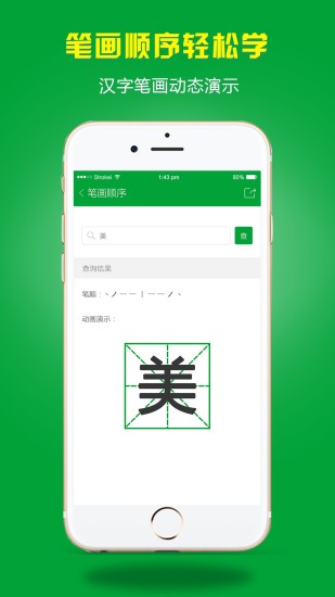 3、【汉语字典】增加笔画分解图片和声音;支持输入拼音搜索。