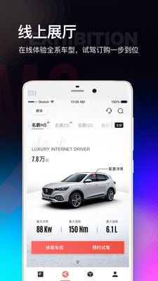2.在线展厅,eHS智能车控、支持Apple Watch,试驾预约及上汽4S店查询。