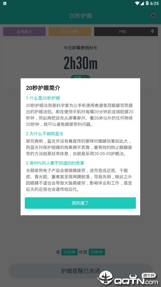 20秒健康护眼app是一款致力于眼部健康的。以20秒护眼法则为核心,定期提醒用户关注视力,并在设定时间到达后强制中断手机使用,帮助人们养成科学用眼的良好习惯。