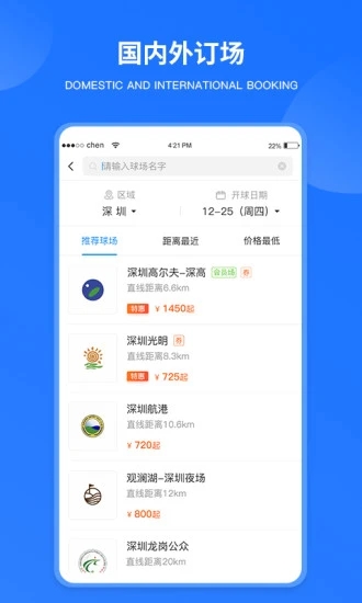1、方寸之间,查询、预订全国各地的高尔夫球场;