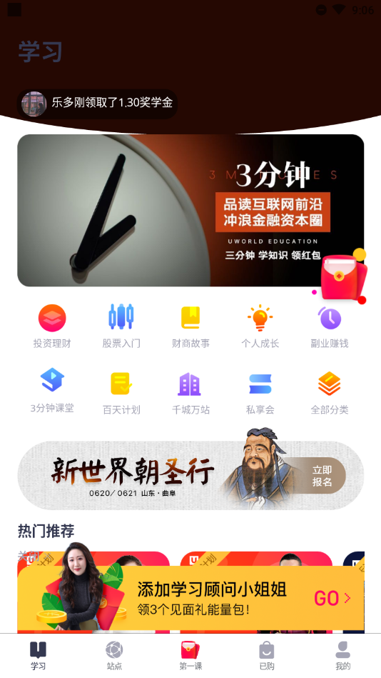 新世界(金融学习)app,专业金融知识学习平台,提供丰富的金融知识,伴随着日出的曙光学习,同时,还有丰厚的等待您的领取,轻松获取奖学金。加入新世界app,深度了解金融领域。
