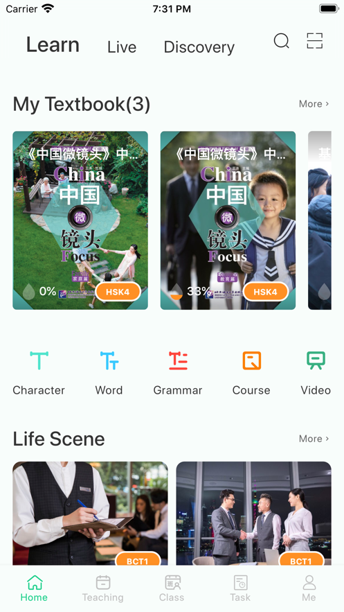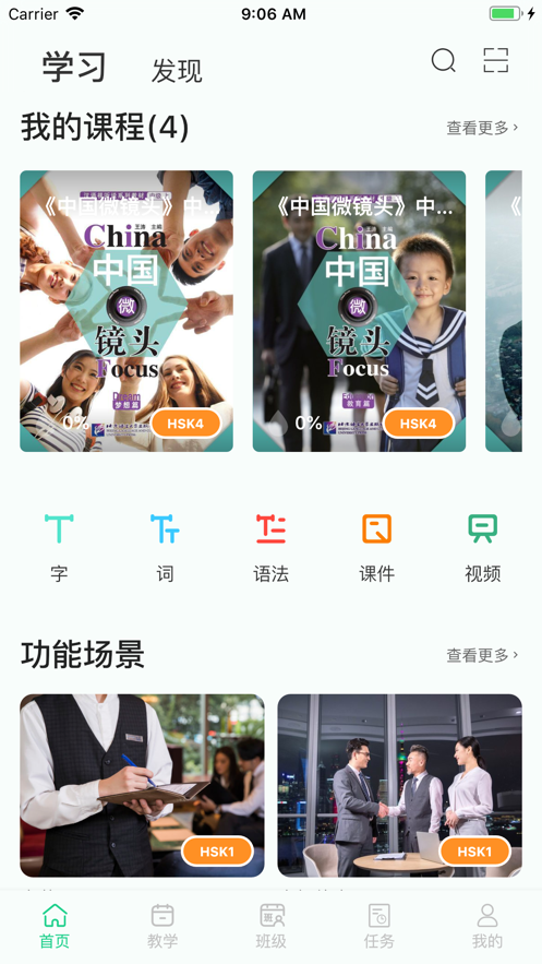 微汉语是一套以可视化教学资源为核心的场景化学习管理系统,