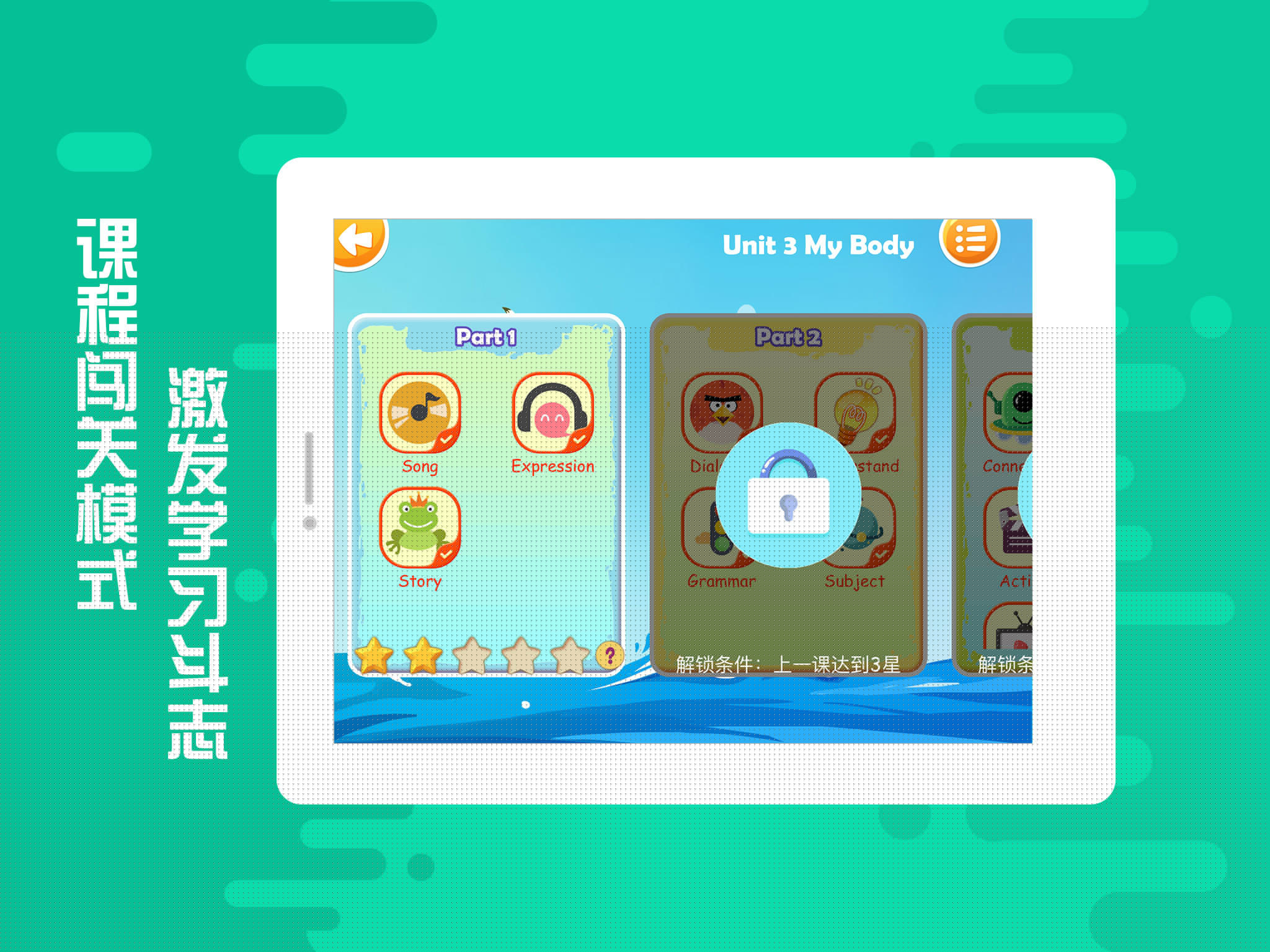 通过逐课解锁的游戏模式,激发您的斗志,快来冲关获取五星荣耀吧!
