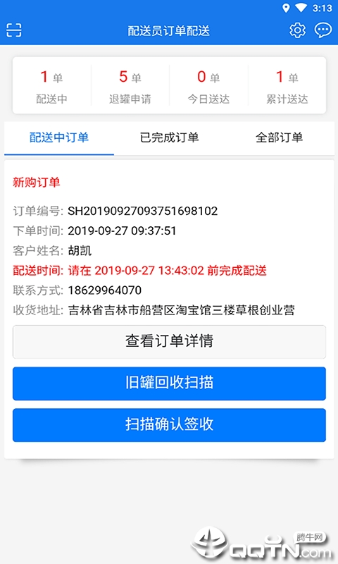 万森燃气配送端主要便捷配送员完成订单配送、核销订单、分配订单,