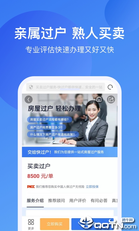 快过户是一项专业的房产顾问服务,旨在为您提供买卖、继承、赠与等房屋事务的一对一高效办理。保障您的安全,让您无后顾之忧。感兴趣的朋友们,诚邀您下载体验。