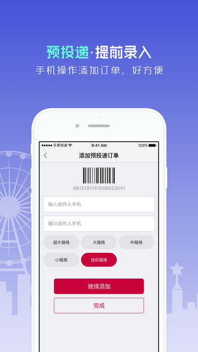 全天候24小时,一键下单、扫码取件,安全便捷,乐家投递将成为您温馨的快递港湾。有了乐家投递,您再也无需担心错过快递的烦恼!