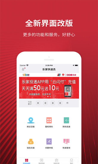 乐家投递快递员APP致力于为社区居民提供一公里范围内的便捷物流服务,结合软硬件的智能快递柜系统,已覆盖全国30多个省市的20万个小区,让用户体验到更为“省心、省时、省力”的服务。全年无休,