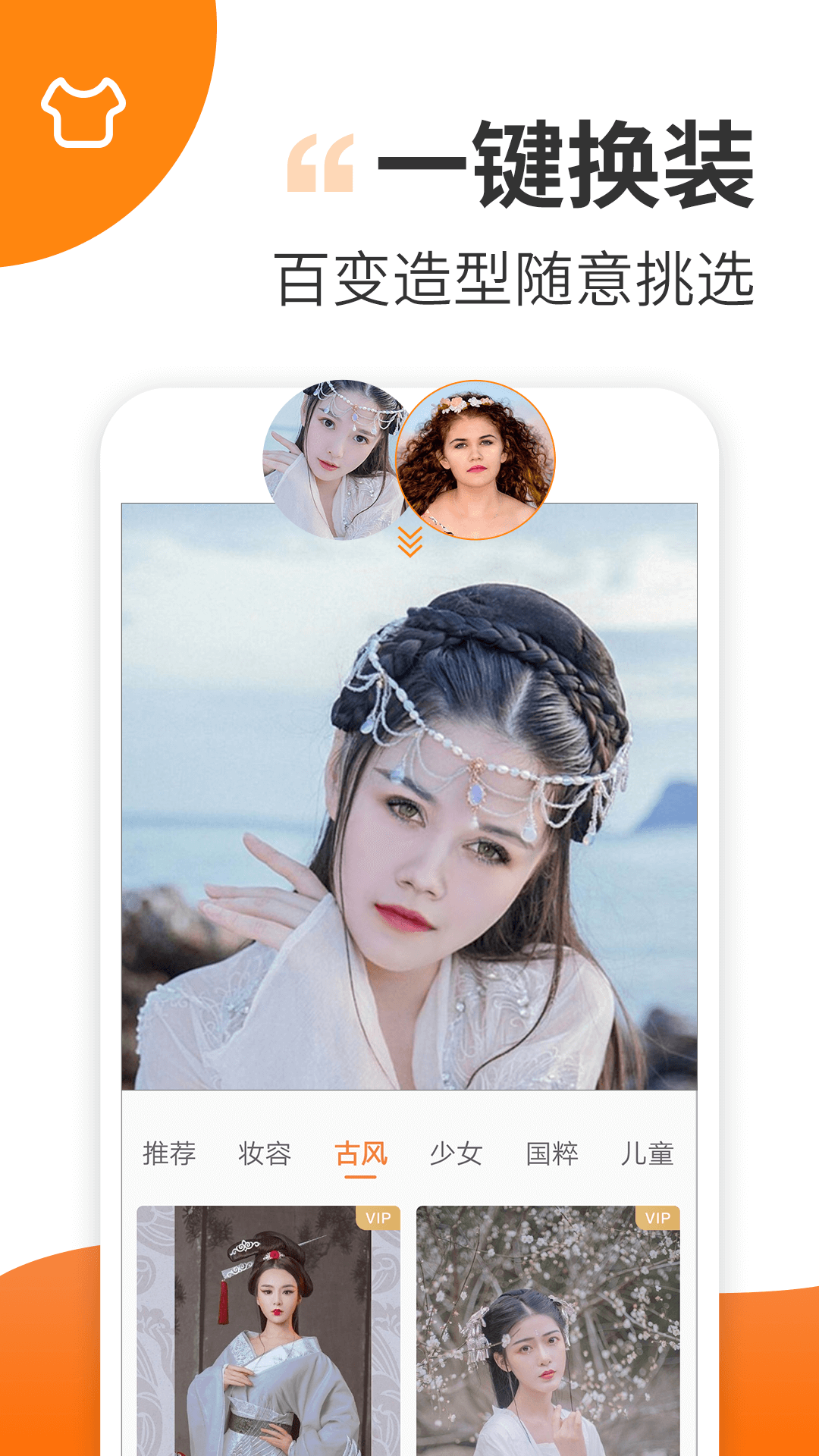 多种换脸素材——让你轻松穿上古装、、旗袍、婚纱,尽情体验民族风、学生风、民国风、国粹等多种风格,让你瞬间化身大明星,快来感受吧!