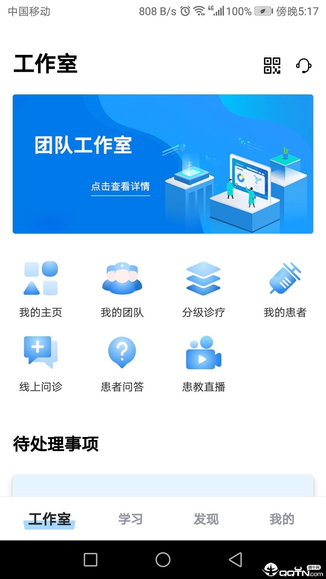 1、在医生工作室内增设【】功能,支持远程会议、远程培训及远程会诊等常见工作场景,视频清晰流畅,尽享免费使用之便。