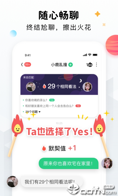 火花终于「蛋」生啦!我们致力于打造有爱、有趣、有态度的治愈社交APP。在火花的小世界里,你无需伪装,无需压力,与志同道合的小伙伴一起,互相倾诉与倾听,温暖与陪伴。