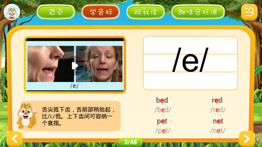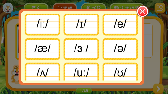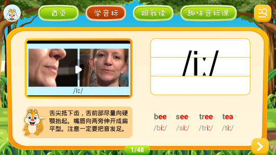 1、涵盖48个英语音标,提供每个音标的标准朗读发音。