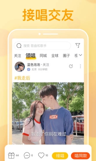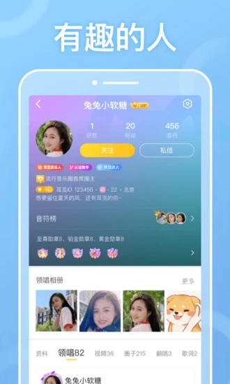 - 接唱:选择心仪的曲目,与他人共同接唱,通过声音来了解彼此