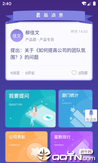 主要功能包括企业提问管理、部门统计、公司表彰及星数排行。