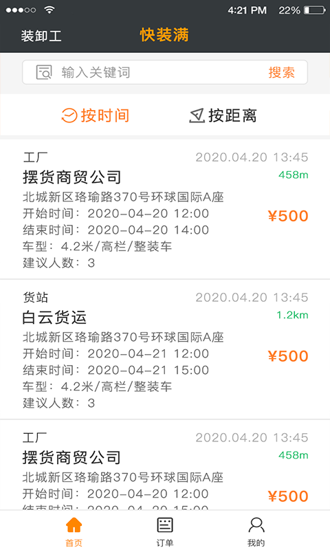 我们的平台涵盖县城周边的装卸工、物流园区与工厂的全部信息,货站和工厂可以通过App发布装车需求信息,附近的装卸工可实时抢单,迅速完成装卸任务。