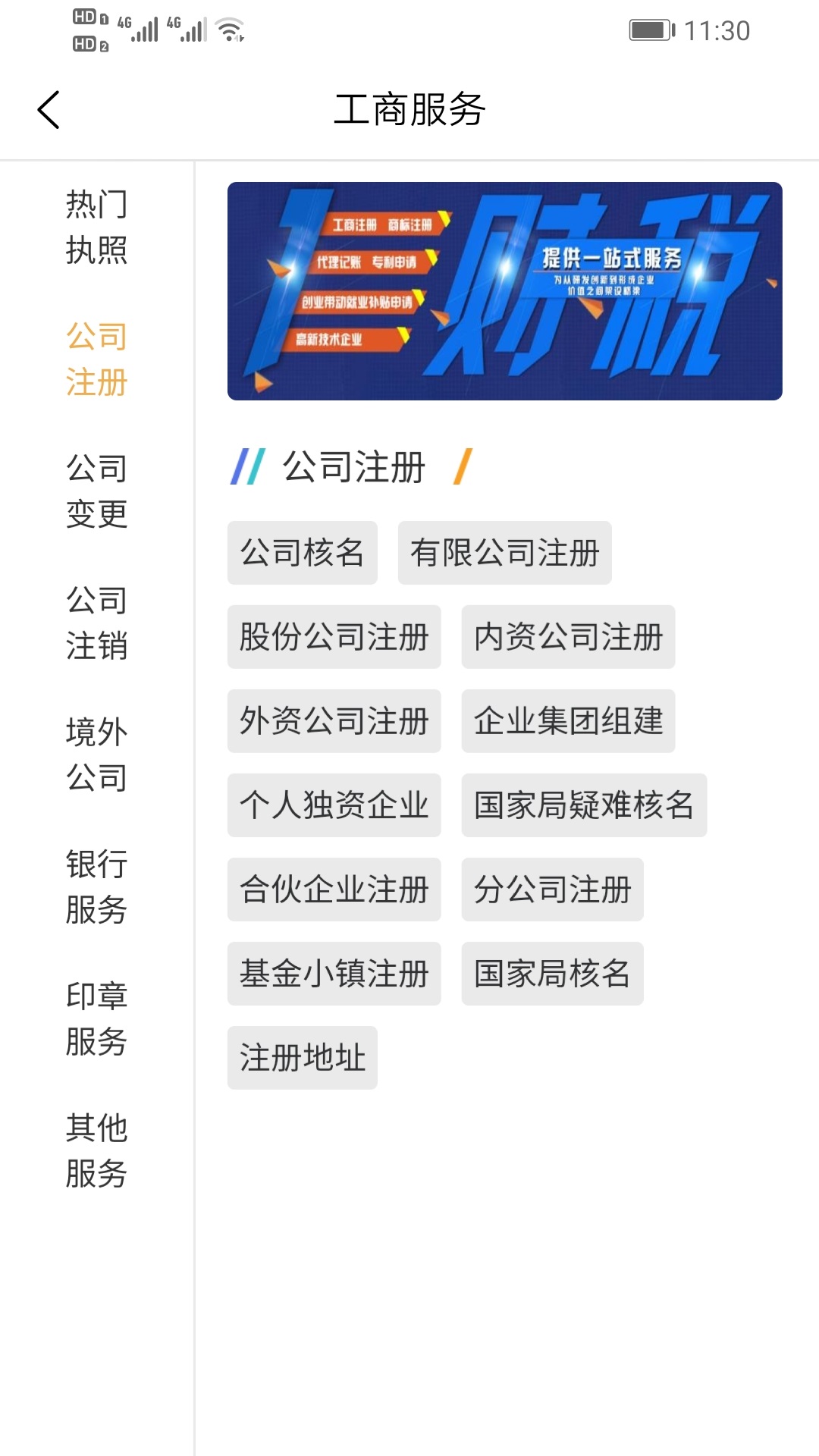 提供工商服务、财税服务、资质许可及人事服务