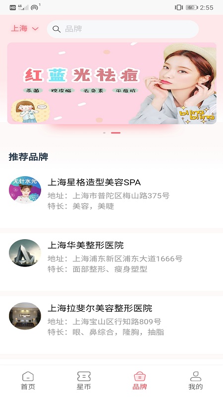 3、提供机构查询与浏览,在线预约体验服务,累积星币积分,分享您的美丽心得。快来体验吧;