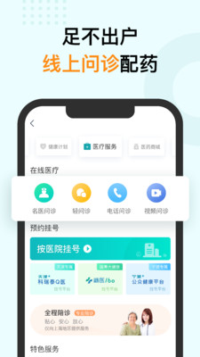 【在线医疗】:提供名医问诊、轻问诊(图文问诊、电话问诊、视频问诊)等便捷服务;