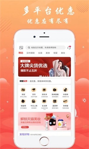 2、多平台优惠:全面接入各大平台的优惠信息,无论何处购物,均可尽享优惠;