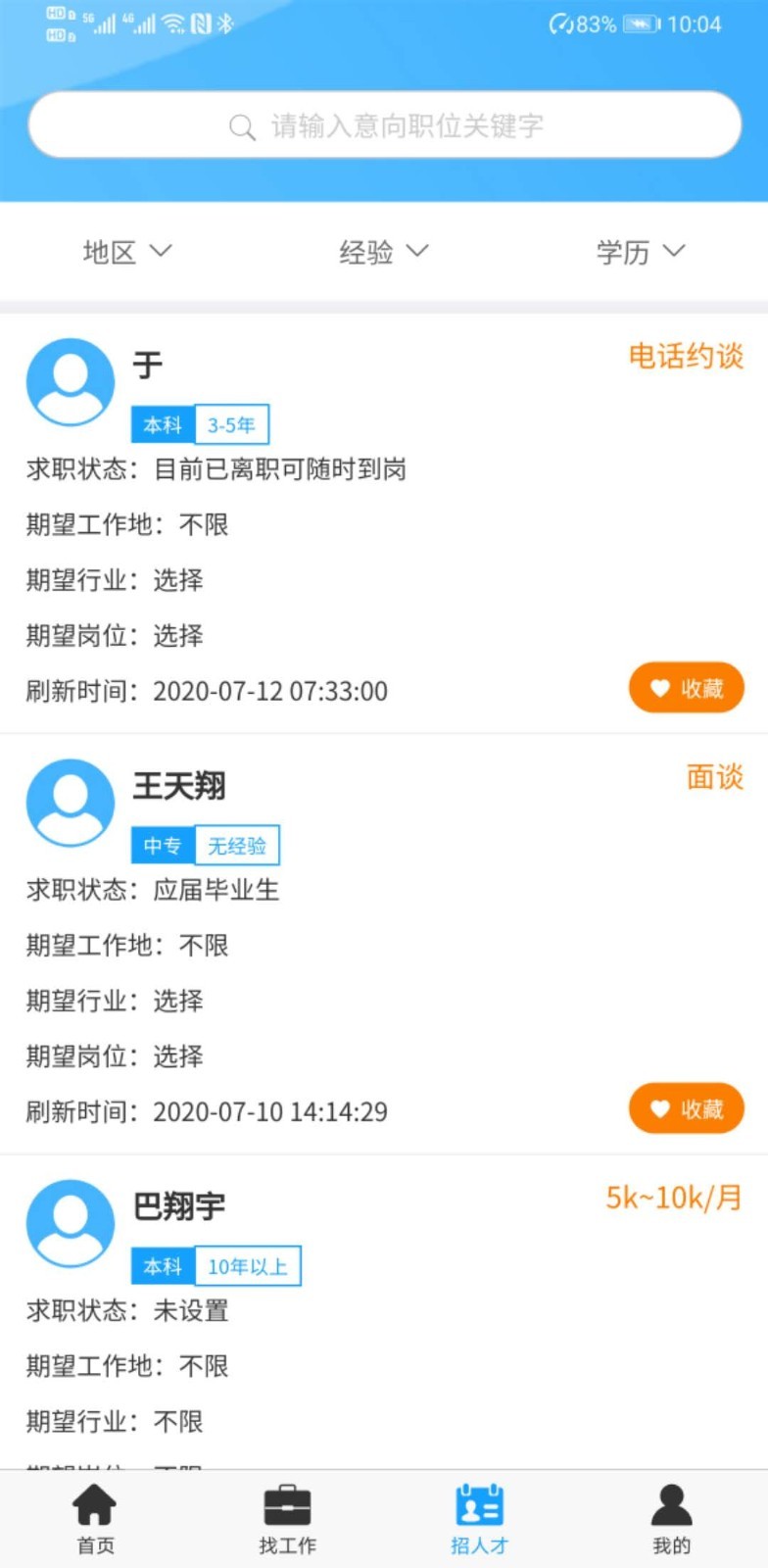 4、职位收藏、申请记录、面试邀请以及简历浏览等实用功能