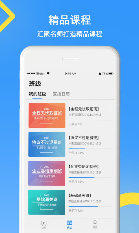 提供一系列完善的教育体系,让用户选择感兴趣的课程,线上学习,获取证书!
