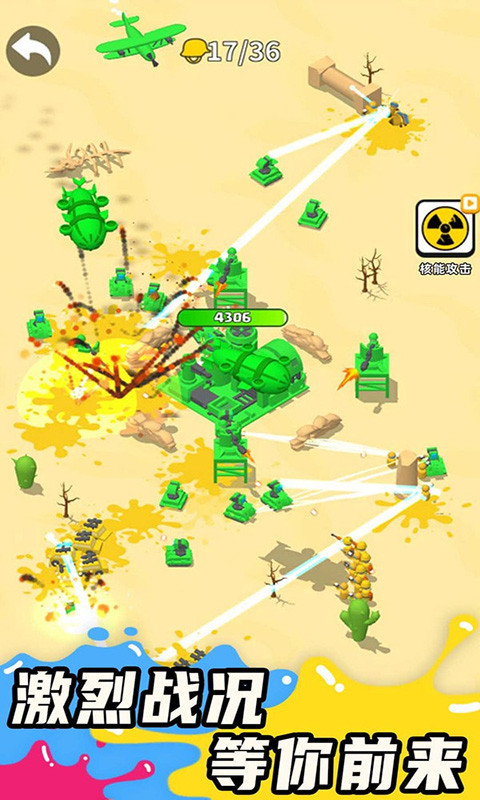 涂鸦,一款休闲策略竞技游戏。在这个游戏中,玩家将化身为指挥官,召集各类士兵,组建强大的军团,凭借各种坦克、机甲、战斗机等武器装备,踏上战场,以策略之计消灭敌军,争做最后的胜利者。