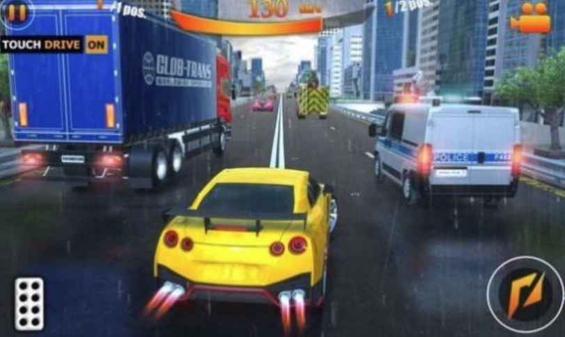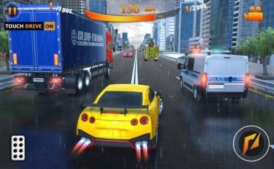 3、游戏中,玩家可驾驶各类汽车在道路上飞驰,采用重力感应操控,尽享驾驶乐趣;
