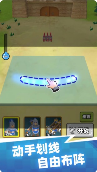 画线是一款源自于小游戏的手机作品,游戏的舞台设定在中世纪,通过画线的方式进行战略布局与战斗。玩家需要在地图上合理排列各类兵种,针对敌方采取不同的军事力量,方能攻破敌人的城堡。