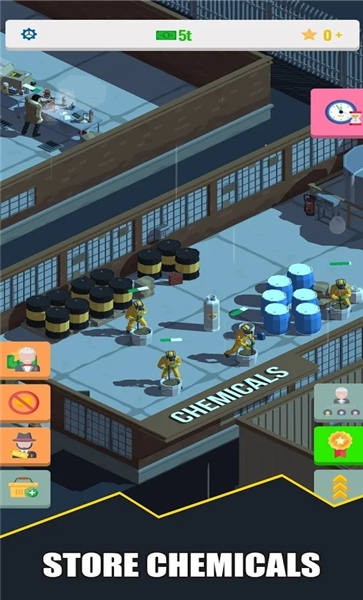 1、这款空闲游戏趣味十足且令人振奋,您将升级工厂,种植杂草,收集被盗的货物,邀请新帮派成员,开辟新地区,在射击场训练枪械,发明新型化学药品等。