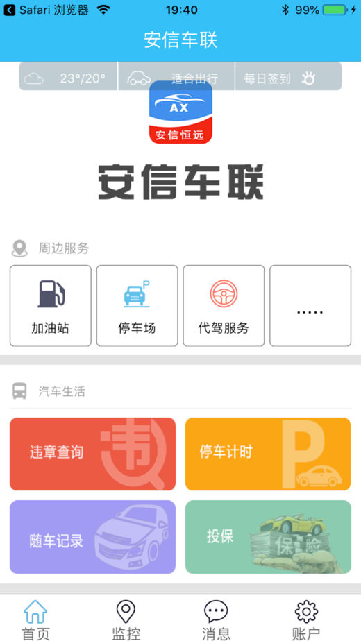 安信是一款专注于汽车信息查询的软件。通过安信车联app,您不仅可以便捷地进行在线违章查询、停车计时、随车记录的查询等多项功能,还能一键获取您的汽车位置、行驶轨迹等信息,实用性不言而喻。需要的朋友们,快来下载体验吧!