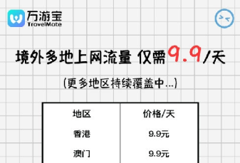 【流量】亚洲15个地区可任意选择流量套餐,单日费用低至9.9元,搭配万游宝全球通用流量卡,支持多国联游及第三国转机,一卡通行。流量可重复使用,您可以自主充值激活。